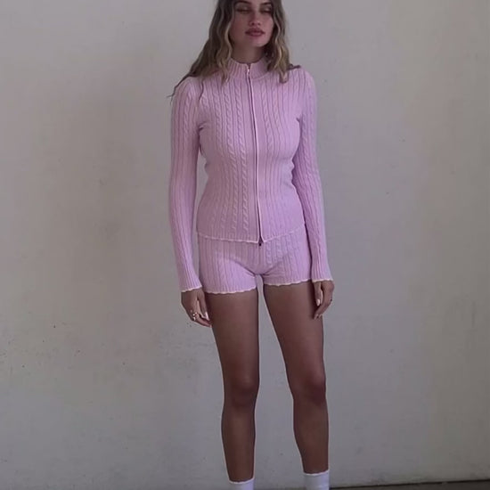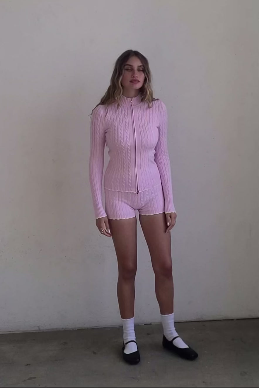 Le Petit ‘Blush’ Cable Knit Two Piece Lounge Short Set